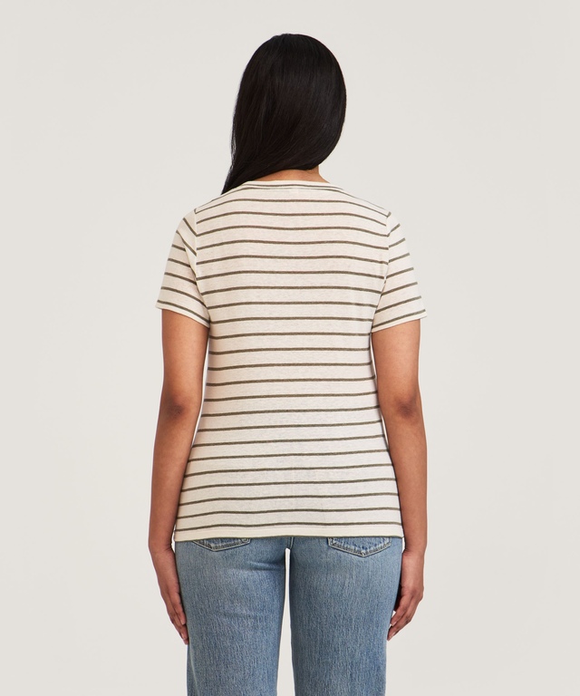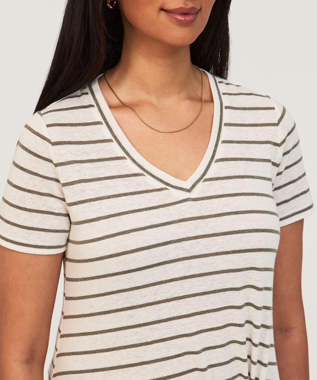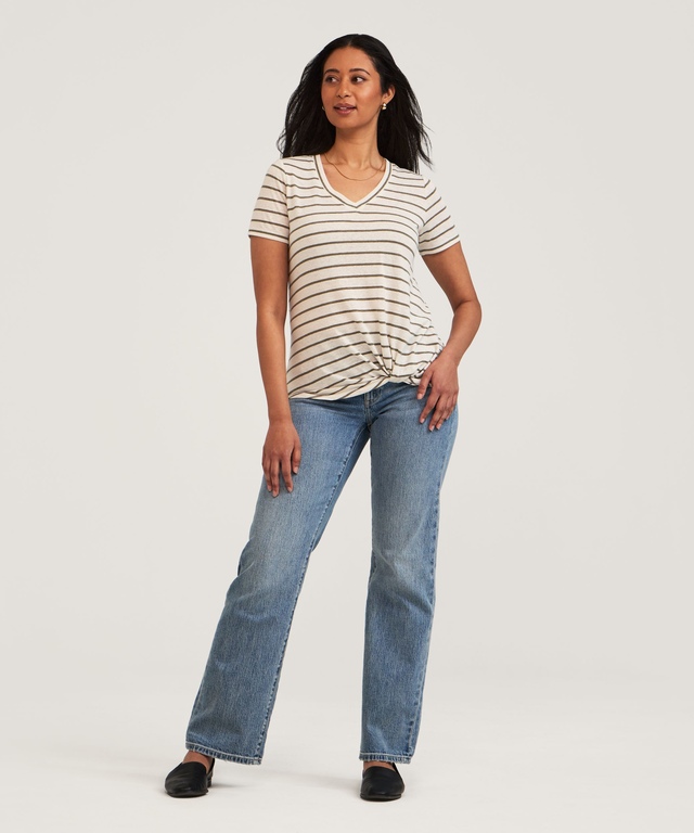 Denver Hayes a rehaussé le chic de ce t-shirt avec un nœud décentré sur le devant. En mélange de lin pour offrir un confort perméable à l’air lors des journées chaudes de l’été, ce t-shirt élégant a l’air parfait agencé à vos pantalons et shorts de saison.