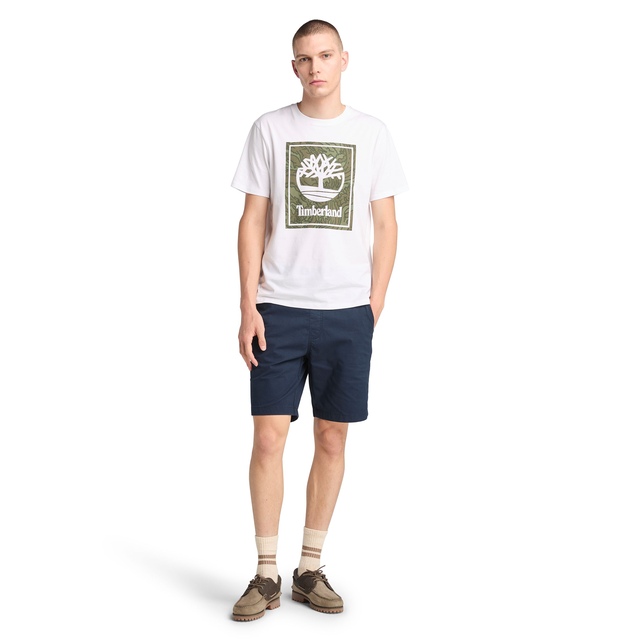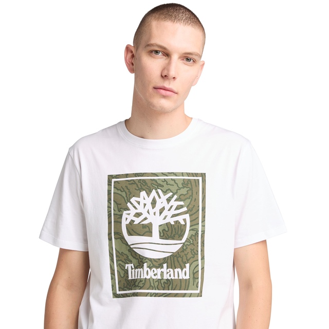 Préparez-vous pour l'été avec le t-shirt à manches courtes Timberland en coton naturellement perméable à l’air. Il arbore le graphique de l’arbre emblématique de la marque sur un fond camouflage.