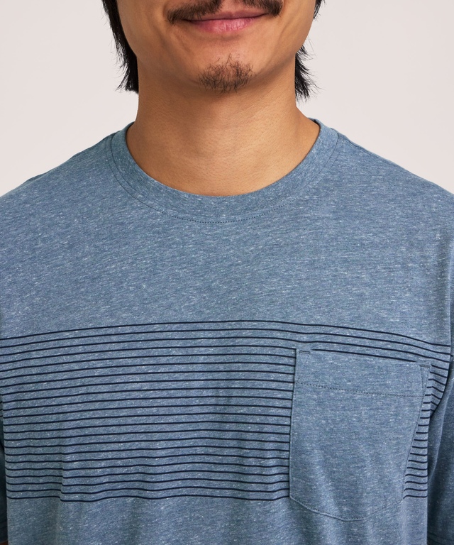 Voici un t-shirt léger de Denver Hayes, agrémenté d’un motif rayé. Ce t-shirt à col ras du cou est doté d’une poche de poitrine unique où vous pouvez ranger votre téléphone ou quelques cartes.