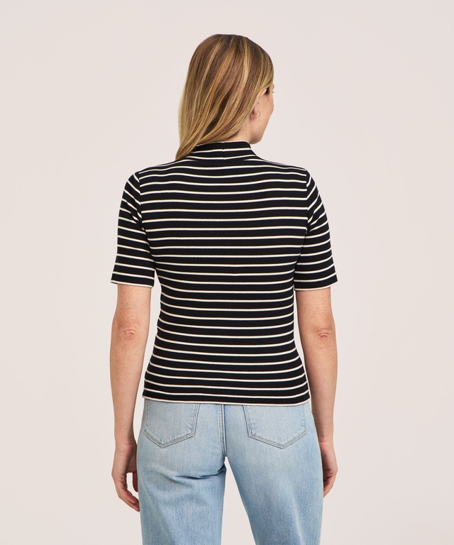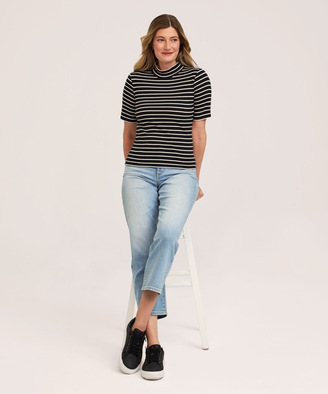 T-shirt semi-ajusté à col cheminée et à manches au coude pour femmes, Denver Hayes