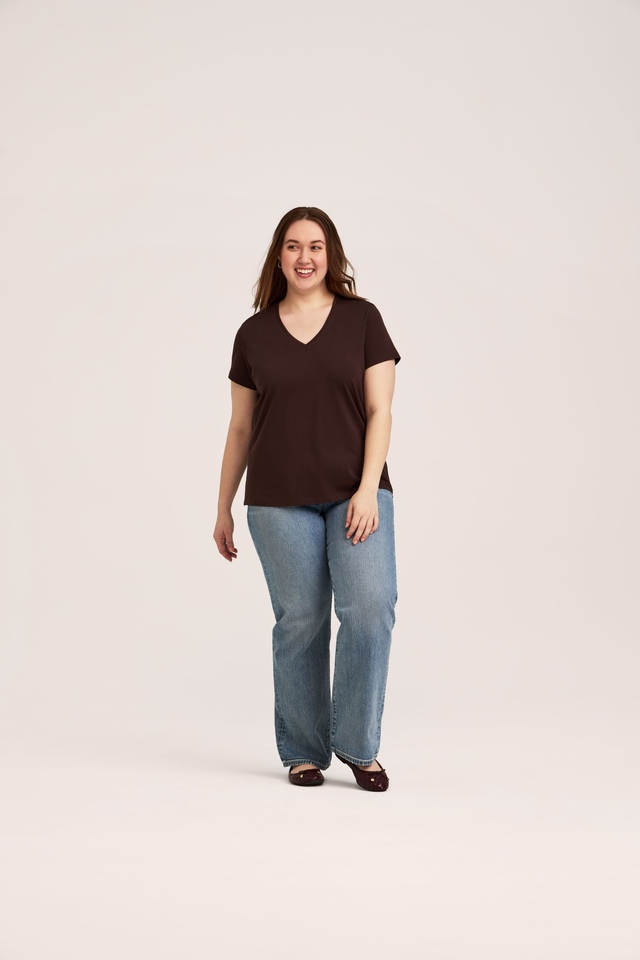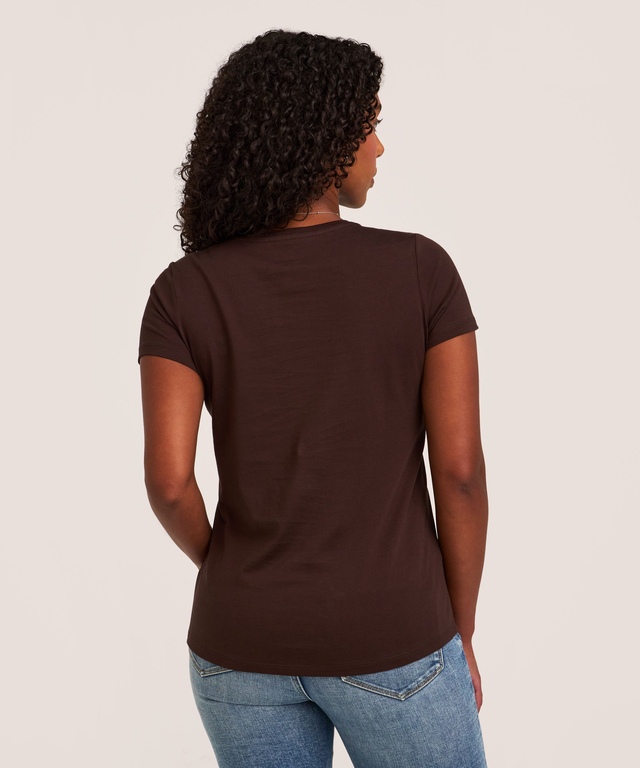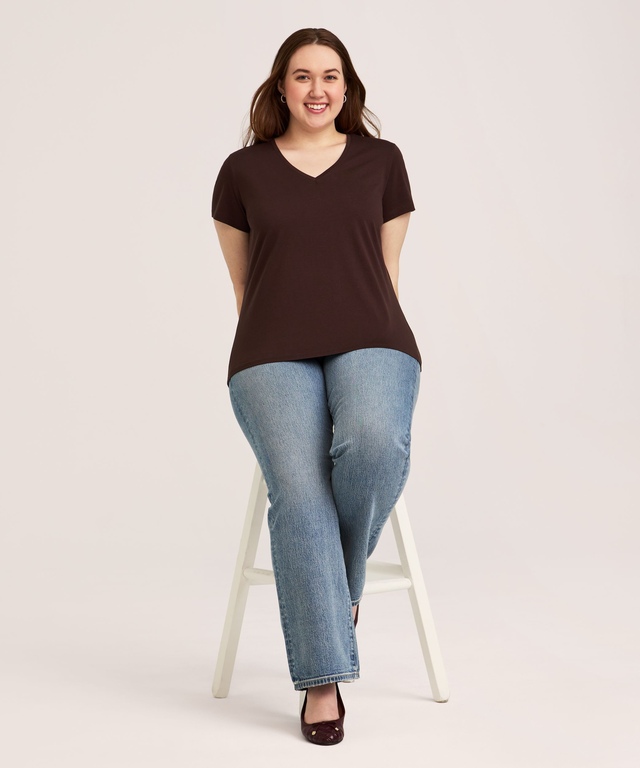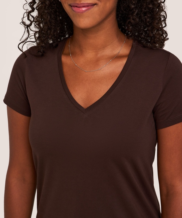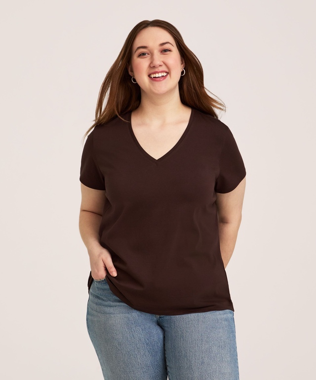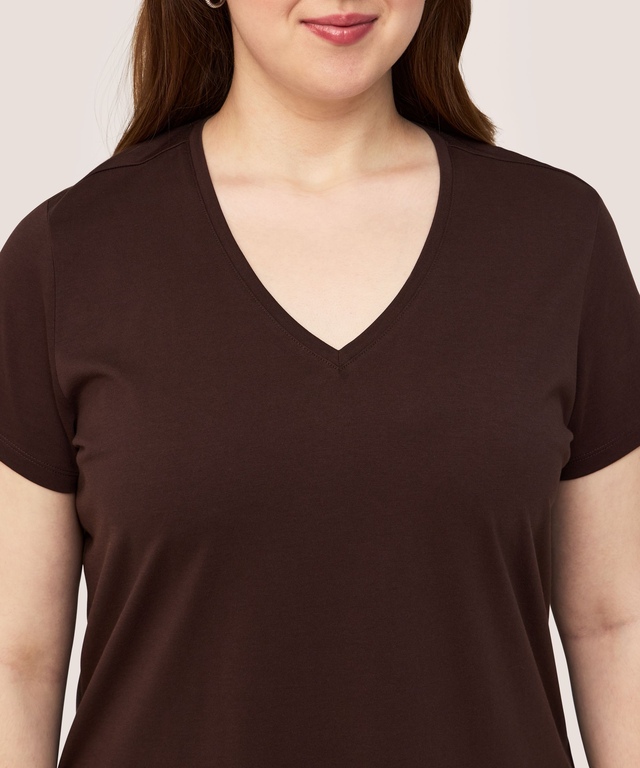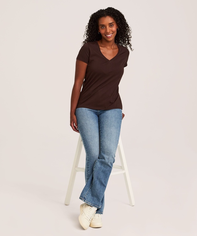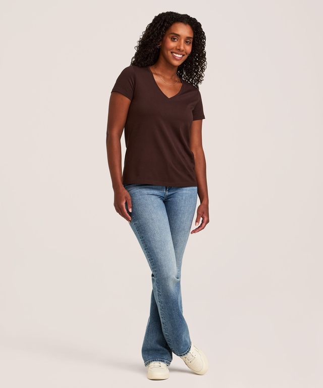 T-shirt semi-ajusté en coton Supima à encolure en V et à manches courtes pour femmes, Denver Hayes