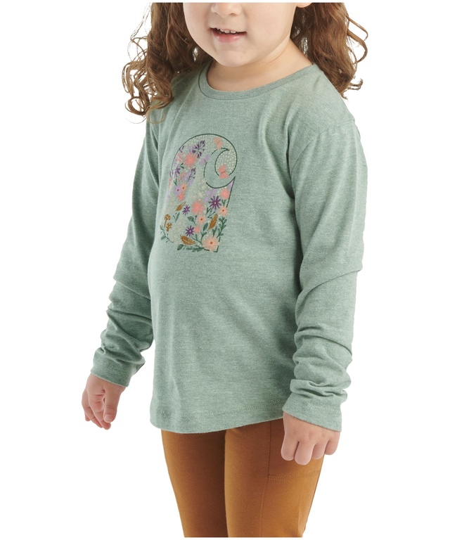 Les fleurs ajoutent une touche de fraîcheur autour du «C» de Carhartt sur ce t-shirt pour enfants. Comme il est sans étiquette à l’encolure, vous n'aurez aucune plainte. Ce t-shirt est un peu plus long à l'arrière, de sorte que le petit qui le porte peut bouger en tout confort.