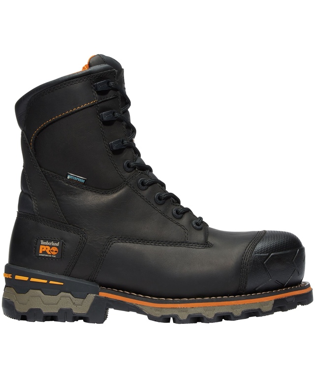 Timberland PRO a conçu les bottes isolées et robustes Boondock afin qu'elles offrent une protection de qualité industrielle. Elles sont munies d'une tige en cuir imperméable avec membrane interne étanche à l'eau et perméable à l'air. Cette tige assure donc une protection optimale contre la moisissure ainsi qu'une résistance aux agents pathogènes du sang. En outre, ces bottes sont isolées afin d'être confortables par temps froid et de retenir la chaleur. Elles intègrent aussi une assise plantaire pourvue de la technologie antifatigue qui procure un amortissement des chocs et un retour d'énergie. Qui plus est, ces bottes sont munies d'un embout et d'une semelle de protection en composite conformes aux exigences de sécurité CSA. Elles possèdent par ailleurs une semelle d'usure en polyuréthane thermoplastique à l'épreuve des intempéries offrant une résistance à la chaleur jusqu'à 120 degrés Celsius.