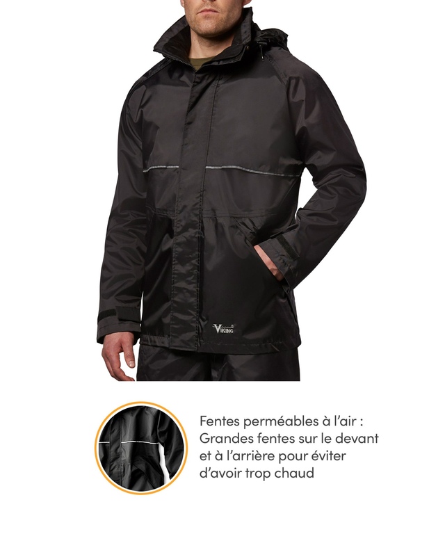 PROTECTION CONTRE LES INTEMPÉRIES: Étanche à l'eau. Capuche en trois sections amovible et doublée. Très grand col confortable doublé en molleton pour protection contre le vent