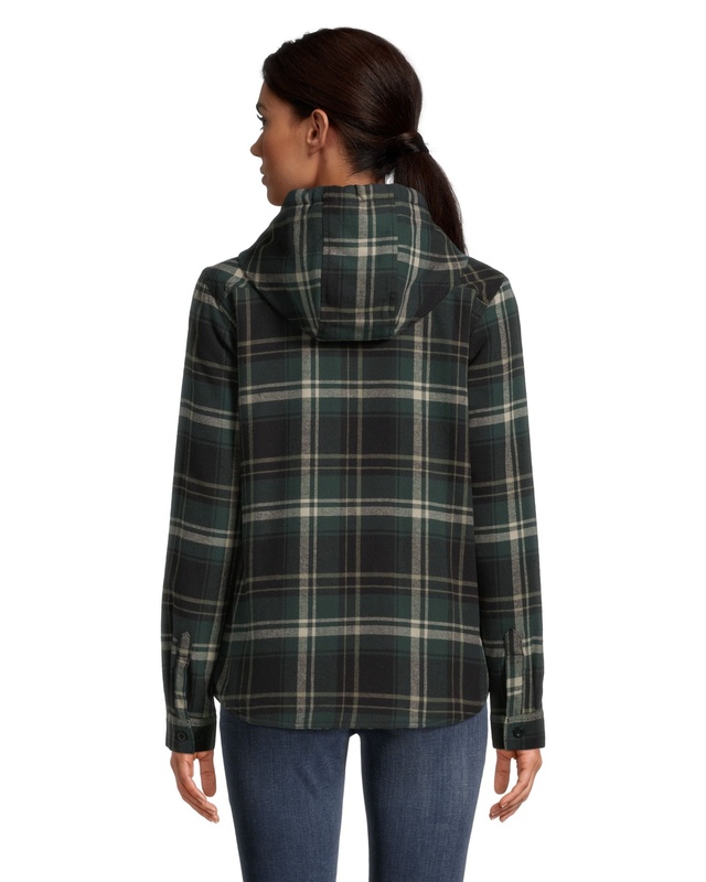 Cette veste en flanelle de coton est doublée en peluche pour offrir un confort accru. Elle comporte une capuche à cordon de serrage qui gardera votre tête et votre cou bien au chaud.