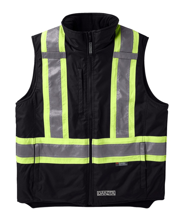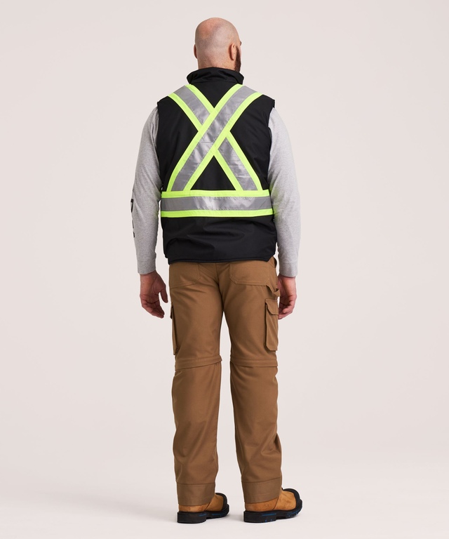 SÉCURITAIRE AVANT TOUT: CSA Z96-15 Catégorie 1, niveau 2. ANSI/ISEA 107-2015 type O, Catégorie 1. Matériau réfléchissant de 2 po (5 cm) 3M de Scotchlite™ en une configuration de 4 po (10 cm) répondant aux exigences des organismes CAT/WorkSafeBC/DOT