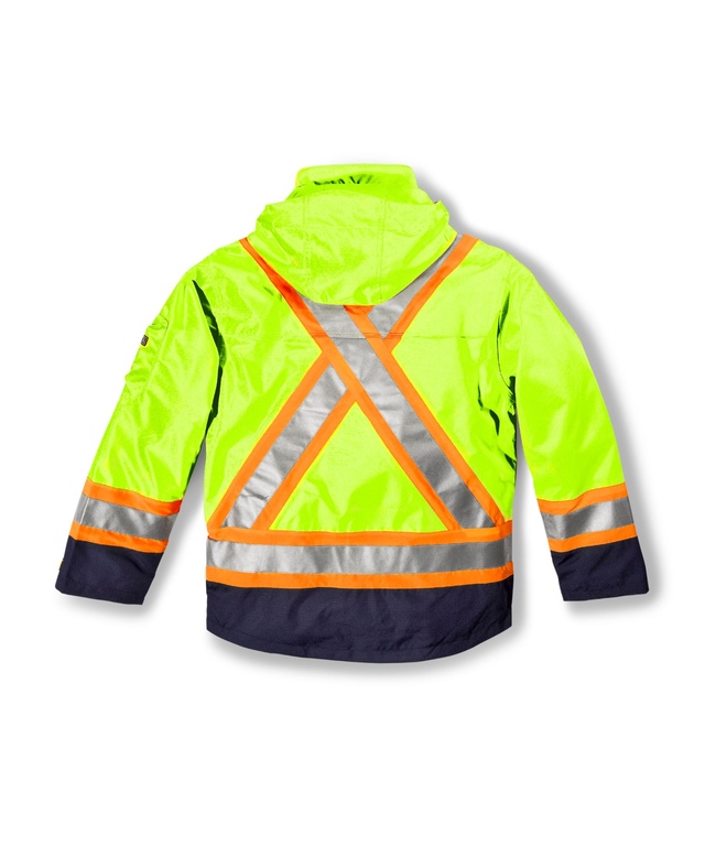 Cette veste polyvalente vous propose trois options durables en un seul vêtement. Pour toutes les saisons, elle fournit tout le confort et la visibilité dont vous avez besoin sur le chantier. Portez la coquille ou la doublure isolée indépendamment l’une de l’autre, ou comme vêtement uni grâce à sa fermeture éclair. La coquille est munie de notre enduit imperméable exclusif HYPER-DRI® HD3 qui garde bien au sec, tout en étant conforme aux normes de visibilité CSA. La doublure amovible est faite d’isolant T-MAX respirant pour une chaleur maximum à régulation de température.