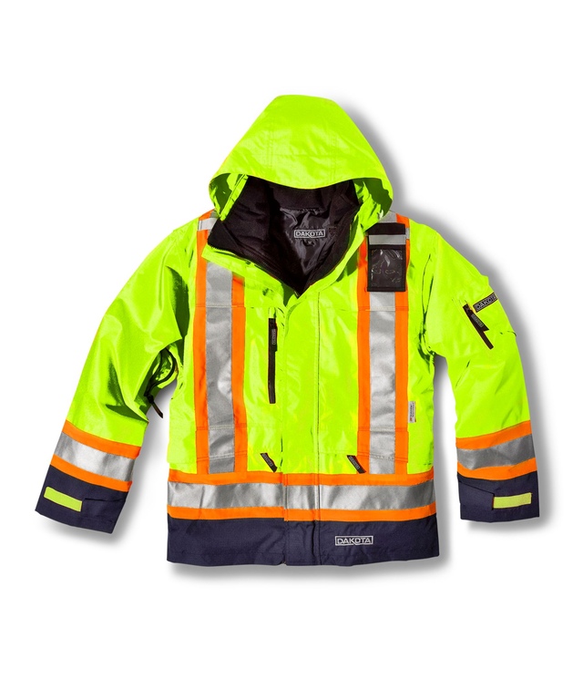 LA SÉCURITÉ D'ABORD: Bande réfléchissante Scotchlite™ de3M™ en configuration WCB/Worksafe/DOT de 4 po (10 cm), couche extérieure conforme aux normes CSA Z96-09 classe 2, niveau 2 (conforme à CSA classe 3 lorsque porté avec un pantalon ou une salopette CSA de classe 2 et niveau 2), ANSI/ISEA 107-2010 classe 3, niveau 2, et vêtements de sécurité BC MOT T-09/05, révision 03/2006