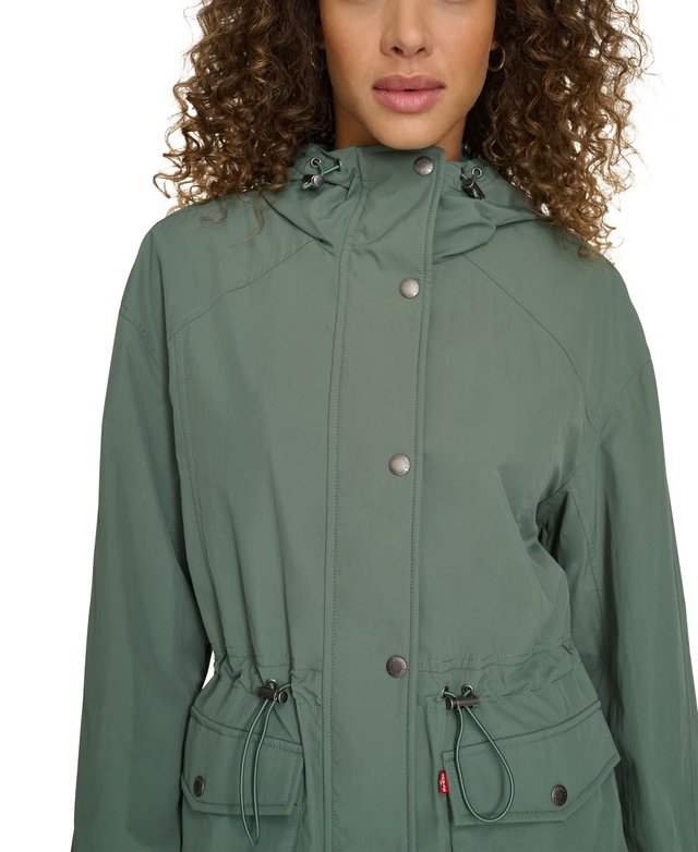 Affrontez les intempéries élégamment en enfilant cette veste hydrofuge de Levi's avec taille réglable pour un ajustement personnalisé. Ce vêtement est aussi muni d'une capuche intégrée qui vous protégera de la pluie. De plus, il possède des poches à rabat amples vous permettant de garder vos articles au sec.