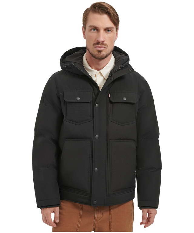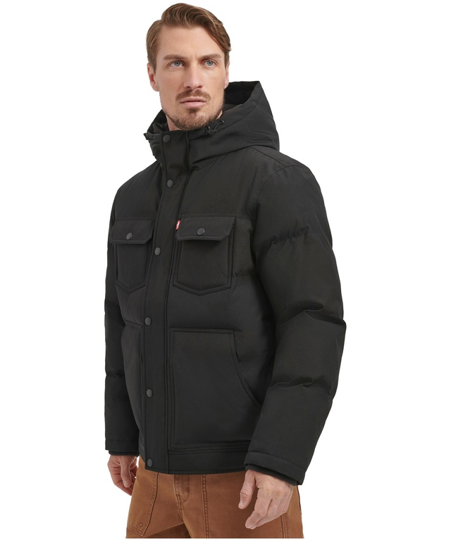 Le temps froid ne fait pas le poids face à cette veste parka bouffante et matelassée de Levi's. Ce vêtement à capuche est muni de quatre poches extérieures et d'une poche de sécurité intérieure. Vous pourrez ainsi ranger tous les articles dont vous avez besoin lors de vos sorties par temps frisquet. Cette veste vous offrira donc toute la protection dont vous avez besoin lors de la saison froide à venir.