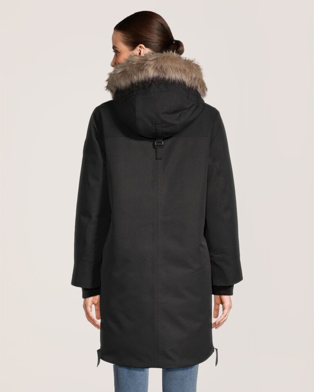 Capuche intégrée avec cordon de serrage : Garniture amovible en fausse fourrure