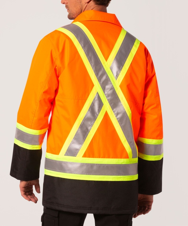 SÉCURITAIRE AVANT TOUT: Matériau réfléchissant de 2 po en bandes contrastantes de 4 po, conforme à la configuration WCB/WorkSafe/DOT. Entièrement conforme aux normes de sécurité : CSA Z96-15, catégorie 1, niveau 2